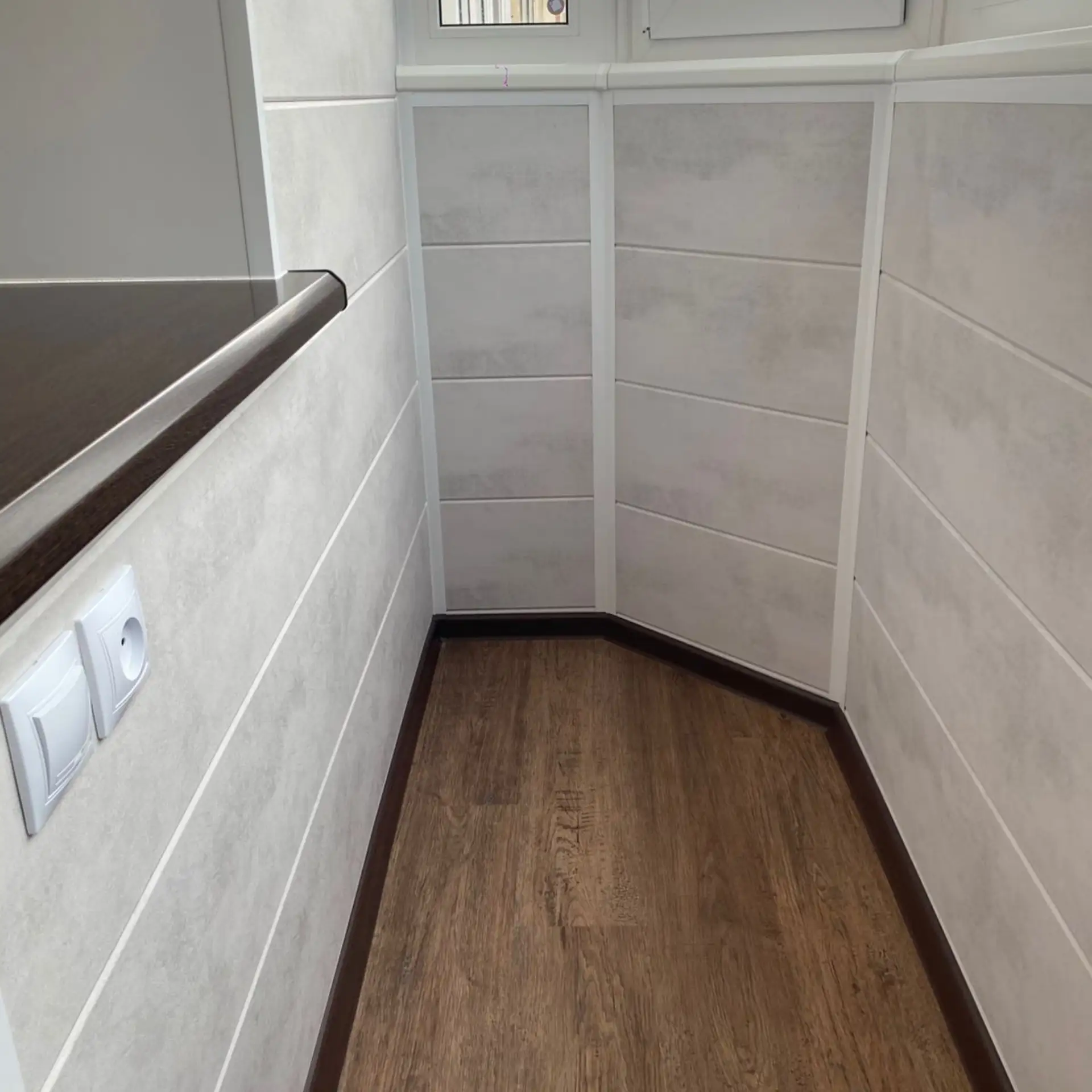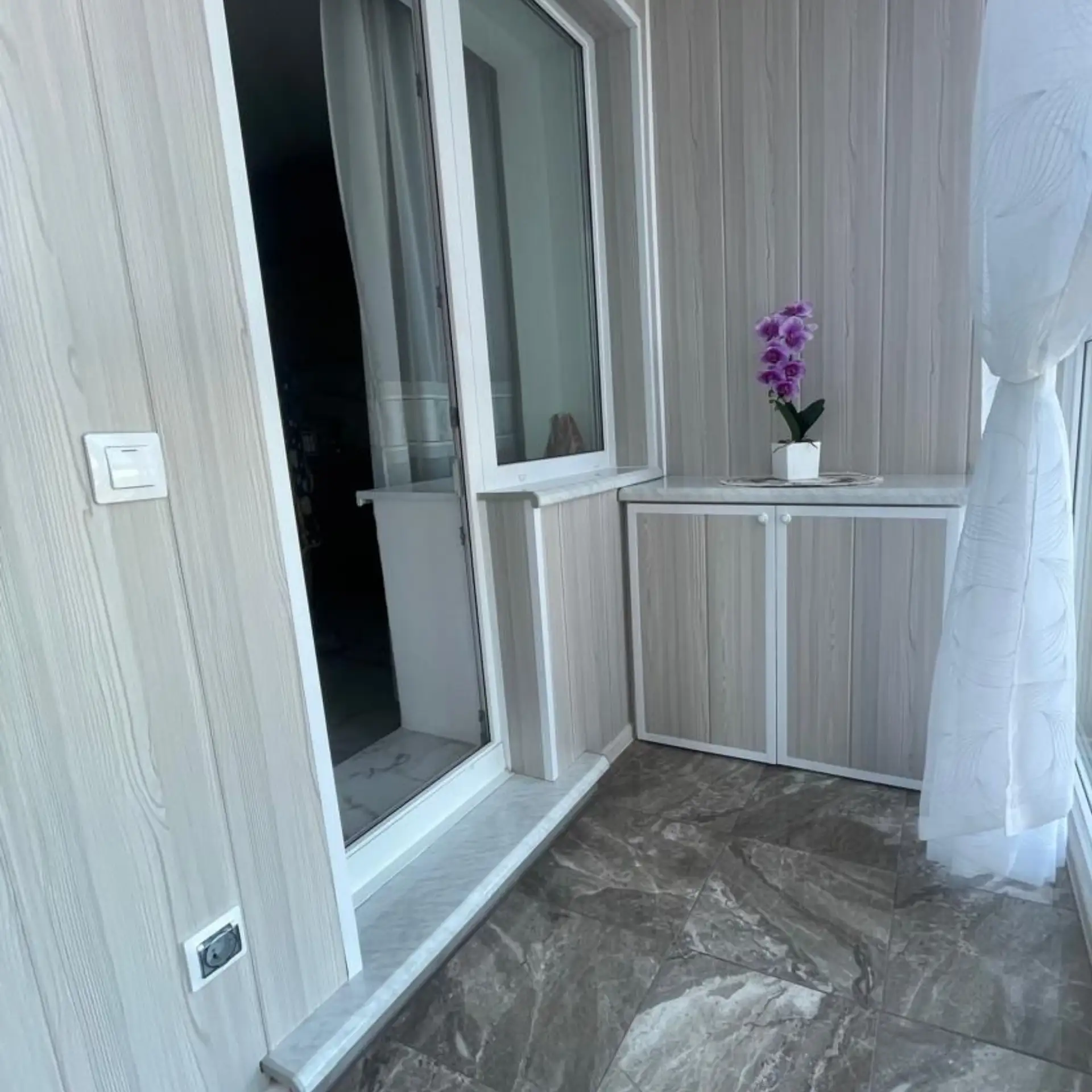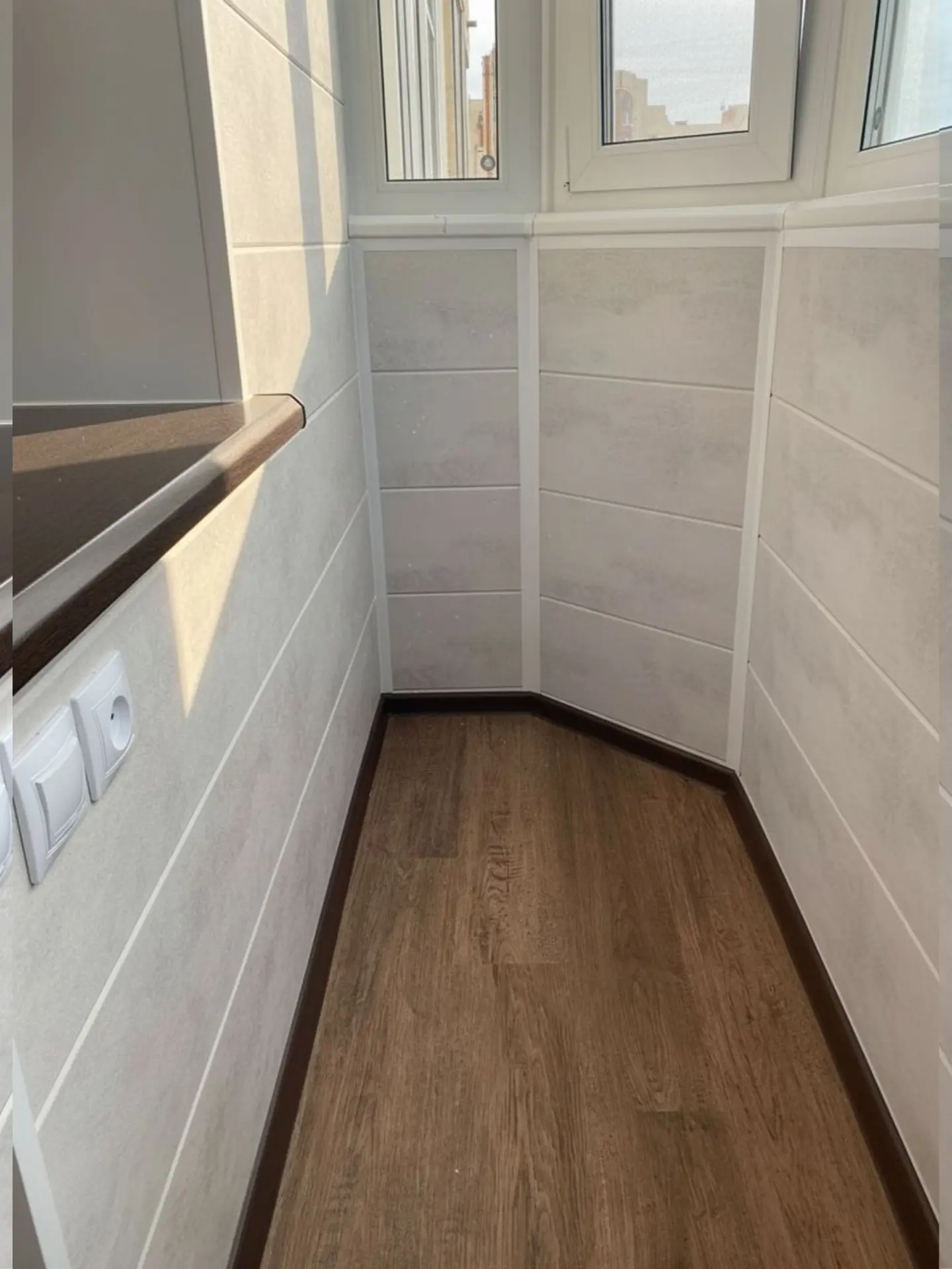 розетки и освещение на балконе для удобства: можно подключать технику, работать или отдыхать с комфортом.